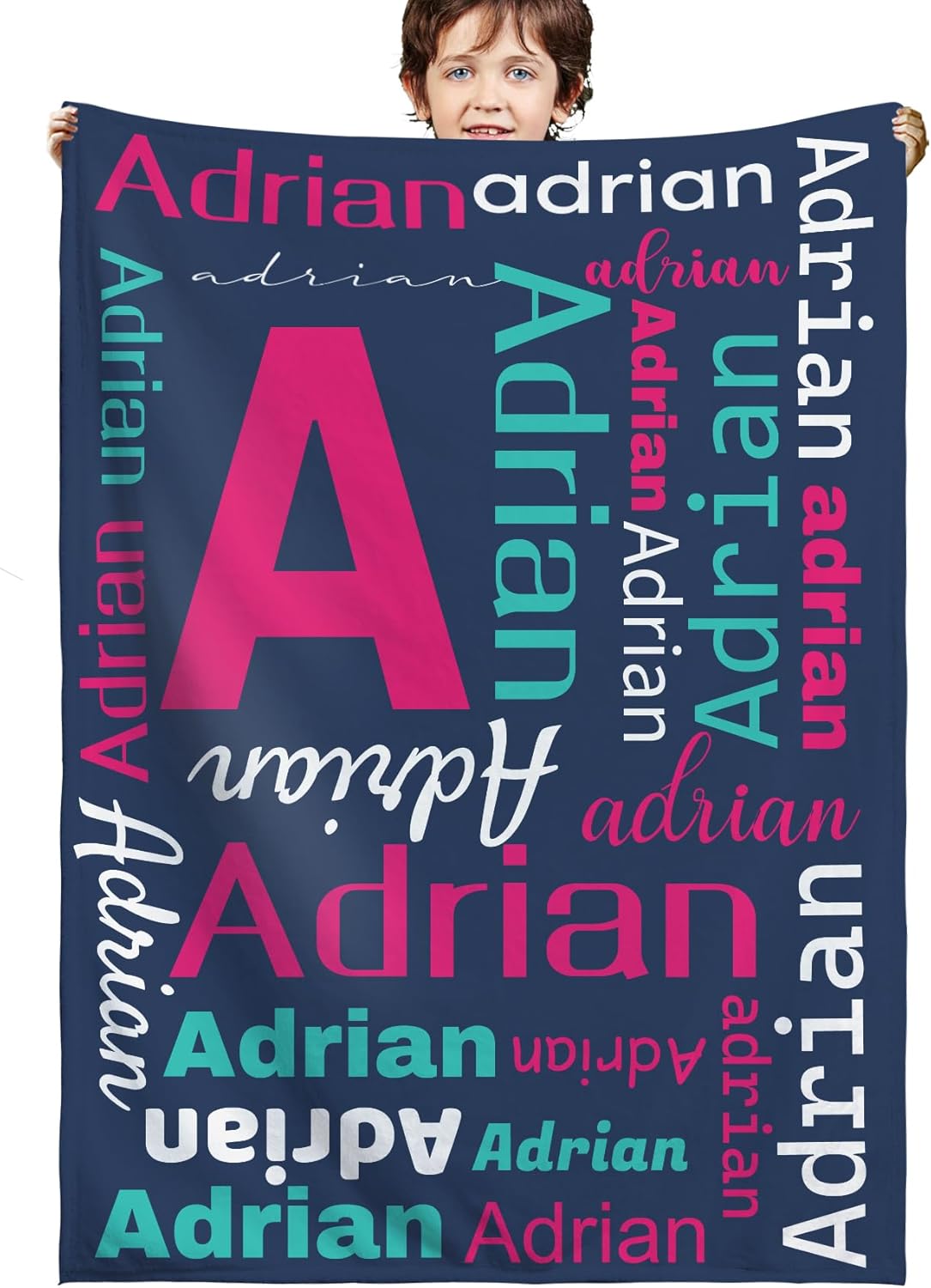 Features:1.You only need to enter your name, we will do the rest for you to make a unique name blanket!2. Suitable for all seasons, perfect for bed, sofa, camping, cold movie theater or traveling.3. Easy to Care: Machine washable or hand washable, tumble dry at low temperature, holds several machine wash and dry beautifully.4. No matter what name you provide, we will print them well on your personalized blanket, which will be the most unique gifts or souvenirs on various holiday, anniversaries.5.Perfect gifts for Birthday, Christmas, Wedding, Anniversary Valentine's Day.How to Customize:This product is designed with the tools that you can create a very exclusive gift.1.Choose the size and color you want2. Click "Customize Now" button3.Provide your names or your text,we will achieve your expected effect as planAttention Please:1. The name you provide should be UPPERCASE name, up to 12 characters, letters only. Name will be replicated multiple times and fonts as displayed.2. Please understand that the customized product ordered is not allowed to return for non-quality reasons as we cannot restock or resold it.3.Please tell us if you have problems with your order. Thanks for visiting!4.If you have ANY concerns about your custom blanket with picture, please feel free to contact us and we will resolve the issue immediately.