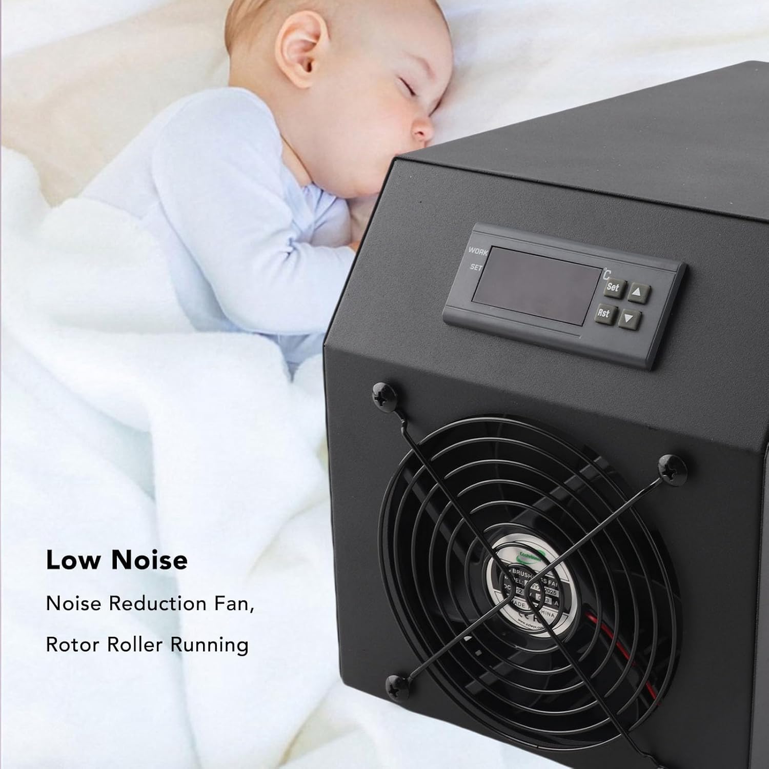 [Complete Kit for Beginners] This water chiller kit includes a high efficiency chiller, reliable water pump, and durable hose, making it the perfect choice for beginners in fish farming and hydroponics. the memory function ensures the chiller maintains the initial set temperature even after restarting, providing consistent cooling performance. [High Efficiency & Durability] Featuring an internal pure copper evaporator, this chiller is highly to erosion and delivers the most efficient heat exchange. it is suitable for both freshwater and seawater use, making it versatile for various and hydroponic applications. [Versatile Application] Ideal for homes, hotels, and aquariums, this water cooling system supports all types of hydroponic organisms including fish, shrimp, and breeding. it is also perfect for any hydroponic system that requires precise temperature regulation for optimal growth and health. [Precise Temperature Control] The chiller offers a wide temperature range of 15 35℃, catering to various cooling needs in different environments. with a simple button press, you can easily adjust the temperature. the advanced heat dissipation hole design significantly enhances cooling efficiency for optimal performance. [ & Quiet] Equipped with r134a refrigerant, this chiller ensures pollution free circulating cooling. the built in silent fan and multiple hole design provide excellent heat dissipation without disturbing your daily life, operating at less than 40db for a peaceful environment. Spec: Item Type: Water Chiller Horsepower: Cooling Water Capacity: ≤16 Gal (60L) Temperature Setting Range: 15-35℃ Applicable Pipe: Approx. 8mm / 0.31in Inner Diameter Suitable Rate: 2-5L/min Suitable Head: Below 3 meter / 9.8ft Package List: 1 x Water Chiller 1 x Power Cord 1 x Water Hose 1 x Water Pump 1 x User Manual How To Use: Take out