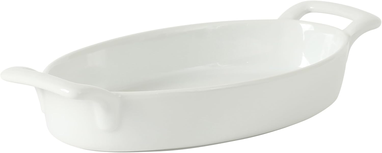 Perfectly sized for casseroles, sides or indulgent desserts, this 4-piece Oval Baking Dish Set from Gracious Dining ensures even baking and melt-in-your-mouth results every time. Each fine ceramic dish is beautiful enough to serve meals straight from the oven. With sturdy side handles, you can take them to the table with balance and support. Whether it’s a casual weeknight dinner or a special occasion, these dishes turn every meal into a celebration.Quintessentially sophisticated and thoughtfully versatile, Gibson Elite offers a tasteful blend of form and function brought to a myriad of dinnerware, serving ware, and tabletop accessories. Quality in material selection and stylish aesthetics in designs and glazing techniques provide endless possibilities for creative tablescapes and dining occasions.