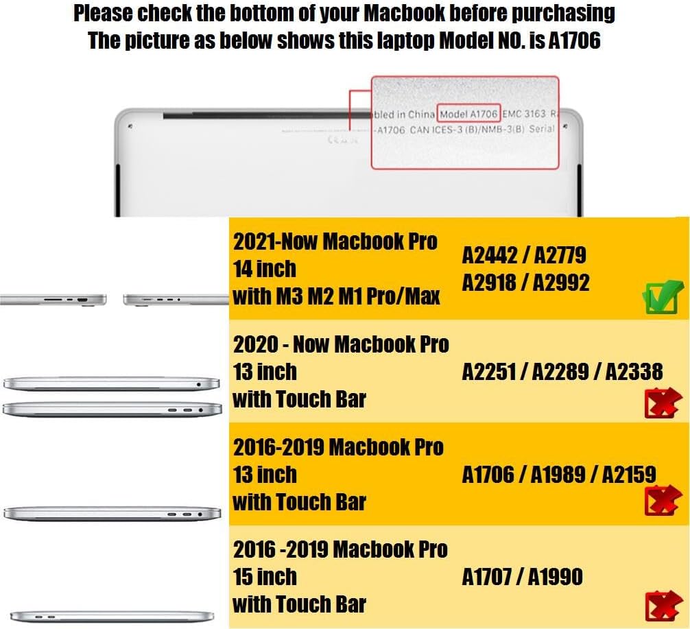 • Compatible with Macbook Pro 14 inch M5 M4 M3 M2 M1 Pro/Max Model A3434 A2442 A2779 A2918 A2992 A3112 A3401 (2025 2024 2023 2022 2021 Release Version Only).