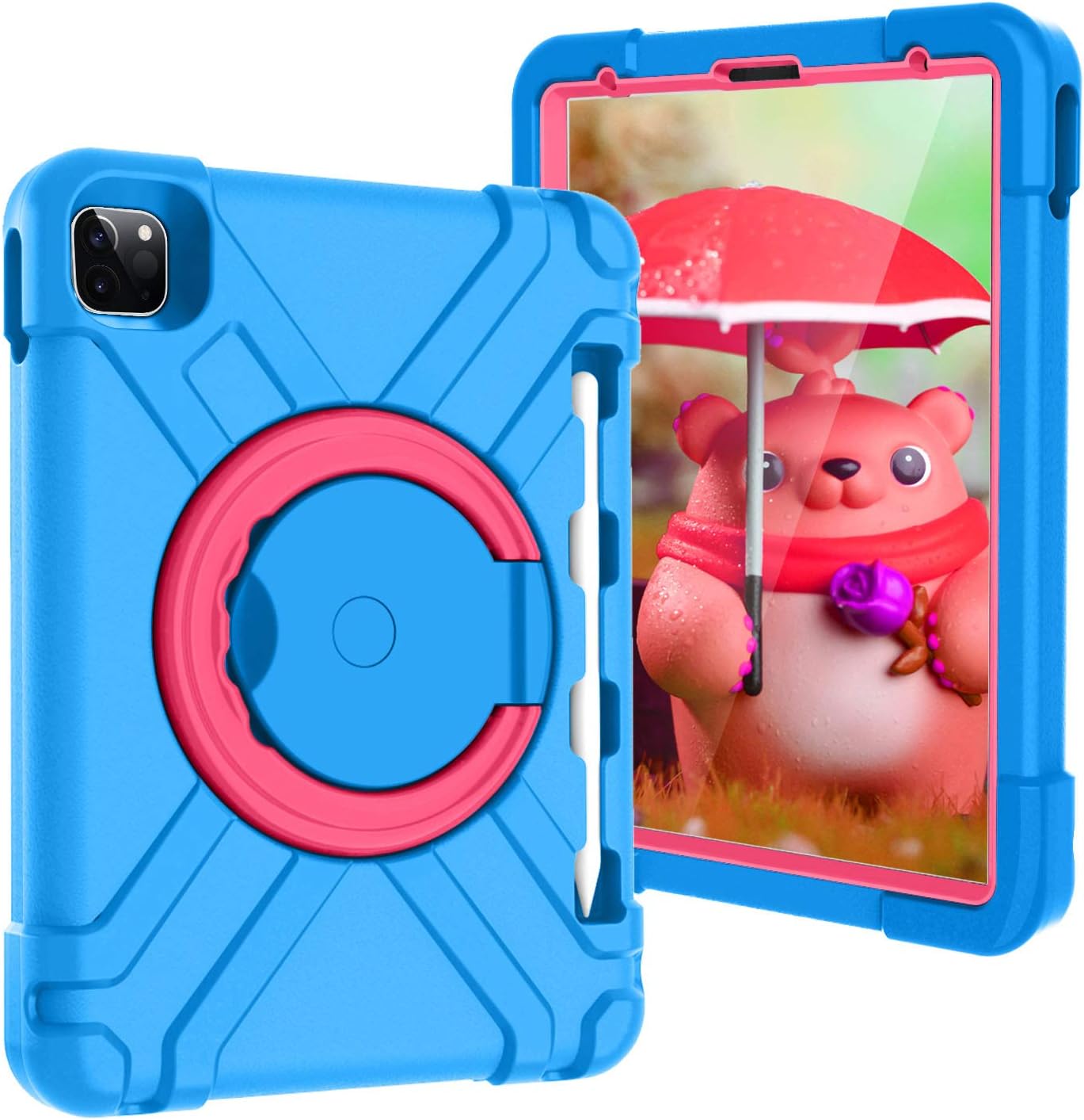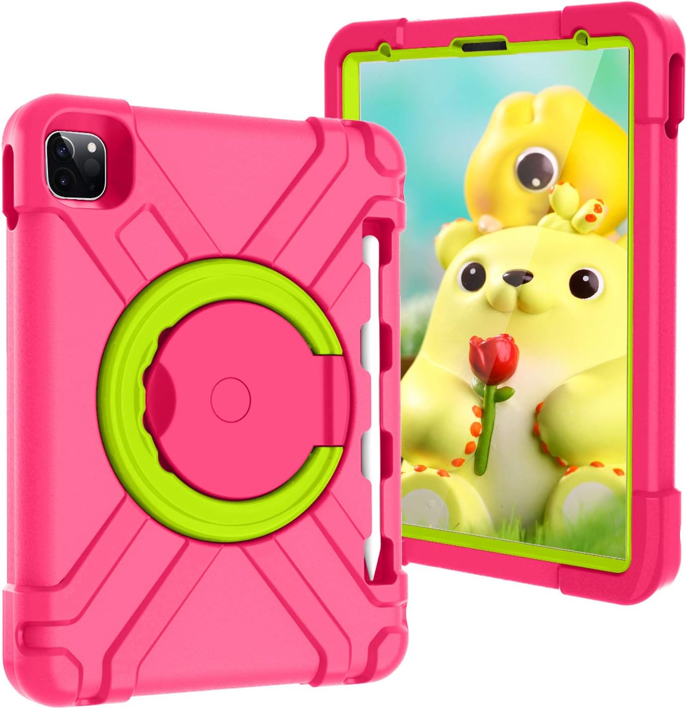 High-Impact Armor Defender - Kiddie Series Shock-Absorbent EVA Protective Carrying Case with Pencil Holder Compatibility: - iPad Air 10.9-inch (5th Generation) 2022 model: A2588, A2589, A2591- iPad Air 10.9-inch (4th Generation) 2020 model: A2072, A2316, A2324, A2325- iPad Pro 11-inch (4th Generation) 2022 model: A2435, A2761, A2762- iPad Pro 11-inch (3rd Generation) 2021 model: A2301, A2377, A2459, A2460- iPad Pro 11-inch (2nd Generation) 2020 model: A2228, A2068, A2230, A2231- iPad Pro 11-inch (1st Generation) 2018 model: A1980, A2013, A1934, A1979 (Not compatible with other iPad models. Please check the model number on the back of your iPad before purchasing.) Ultimate Protection & Durability: 2-in-1 Hybrid Shield: Shockproof EVA bumper + Hard PC front frame (No built-in screen protector). 360° Rotatable Swivel Ring Stand: Functions as a hands-free stand and a comfortable grip handle for kids and adults. Enhanced Corner & Camera Protection: Absorbs impact from accidental drops and bumps. Precise Cutouts: Easy access to all buttons, ports, speakers, and cameras. Kid-Proof & Heavy-Duty: Perfect for home, school, office, and travel. Package Includes: 1 x Heavy-Duty Protective Case for iPad Pro 11" 2018-2024, iPad Air 10.9" 2020/2022 1 x Stylus Pen (random color) 1 x Cleaning Cloth Important Reminders: Adult Installation Required: Kids may damage the case, especially the front frame, if not installed properly. How to Remove the Front Frame: Start from the corners, not the sides, to avoid damage during installation. Have Questions? Feel free to reach out! We're here to help. Enjoy your shopping!