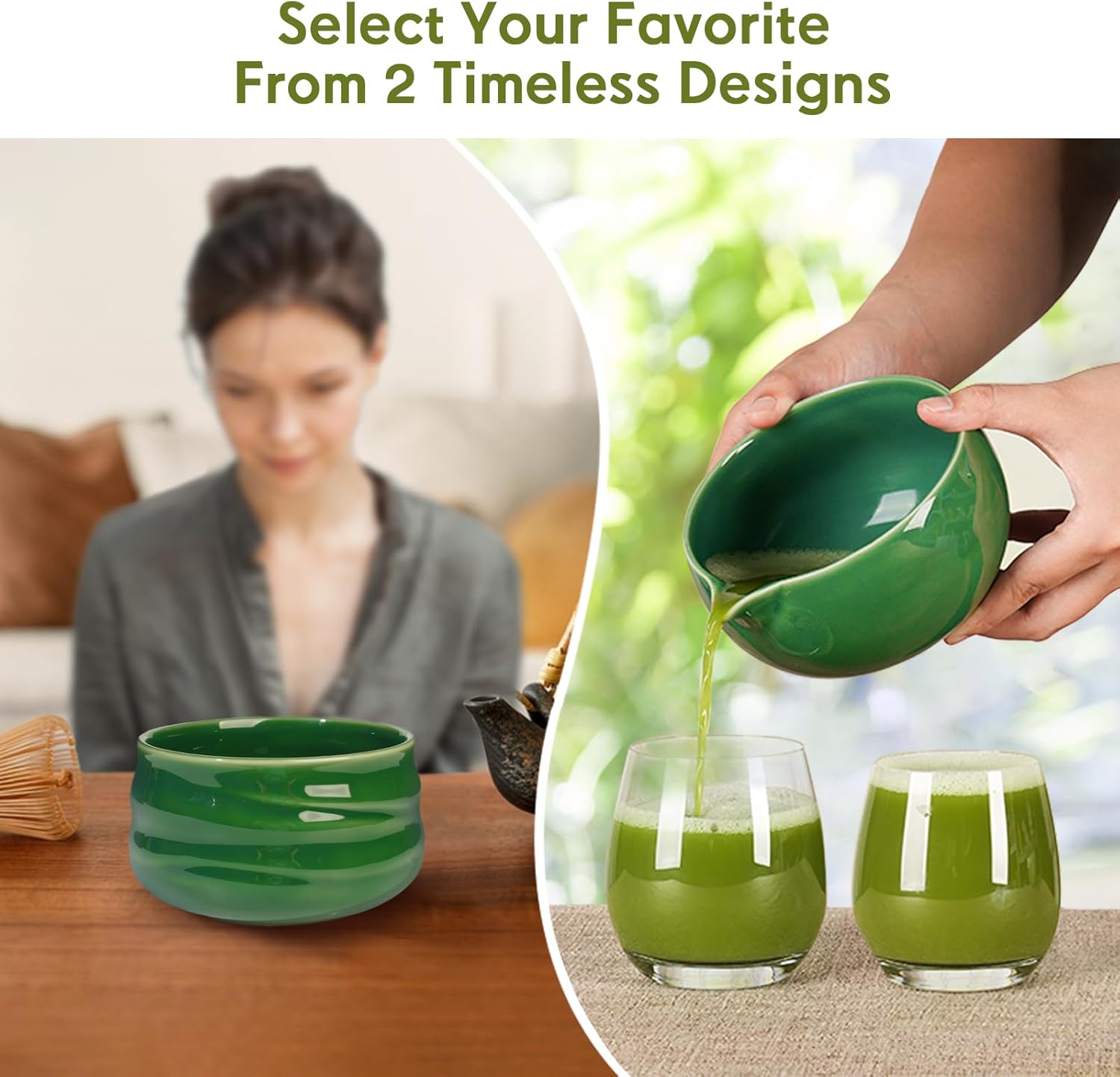 • Premium Matcha Bowl Design : This 20oz chawan matcha bowl features a smooth emerald green glaze and elegant wavy design. Comfortable to hold, its wide mouth makes whisking easy and sipping direct—creating the frothy texture essential to authentic matcha. A beautiful piece on its own or a refined addition to a matcha making kit, it’s ideal for rituals, ceremonies, or stylish décor.