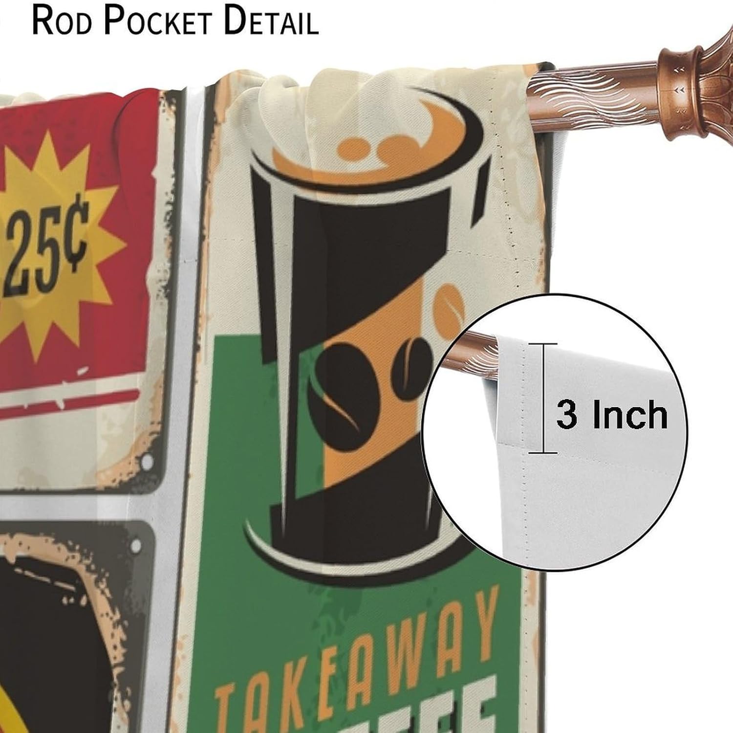 Rustic Collage Coffee Curtains,Drink Roasted Beans Brewing Farmhouse Country Art Blackout Rod Pocket Window Treatments for Kitchen Bedroom Dining Living Room Home Drapes 42" W X 45" L